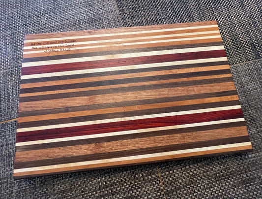 Thank you for visiting our Wea Woodworking website. Our cutting boards and other wood products are handmade by skilled craftsman from the highest quality woods, domestic and exotic, depending on the specific item you select. Our products are handmade in our shop in Louisburg, Kansas near Kansas City.